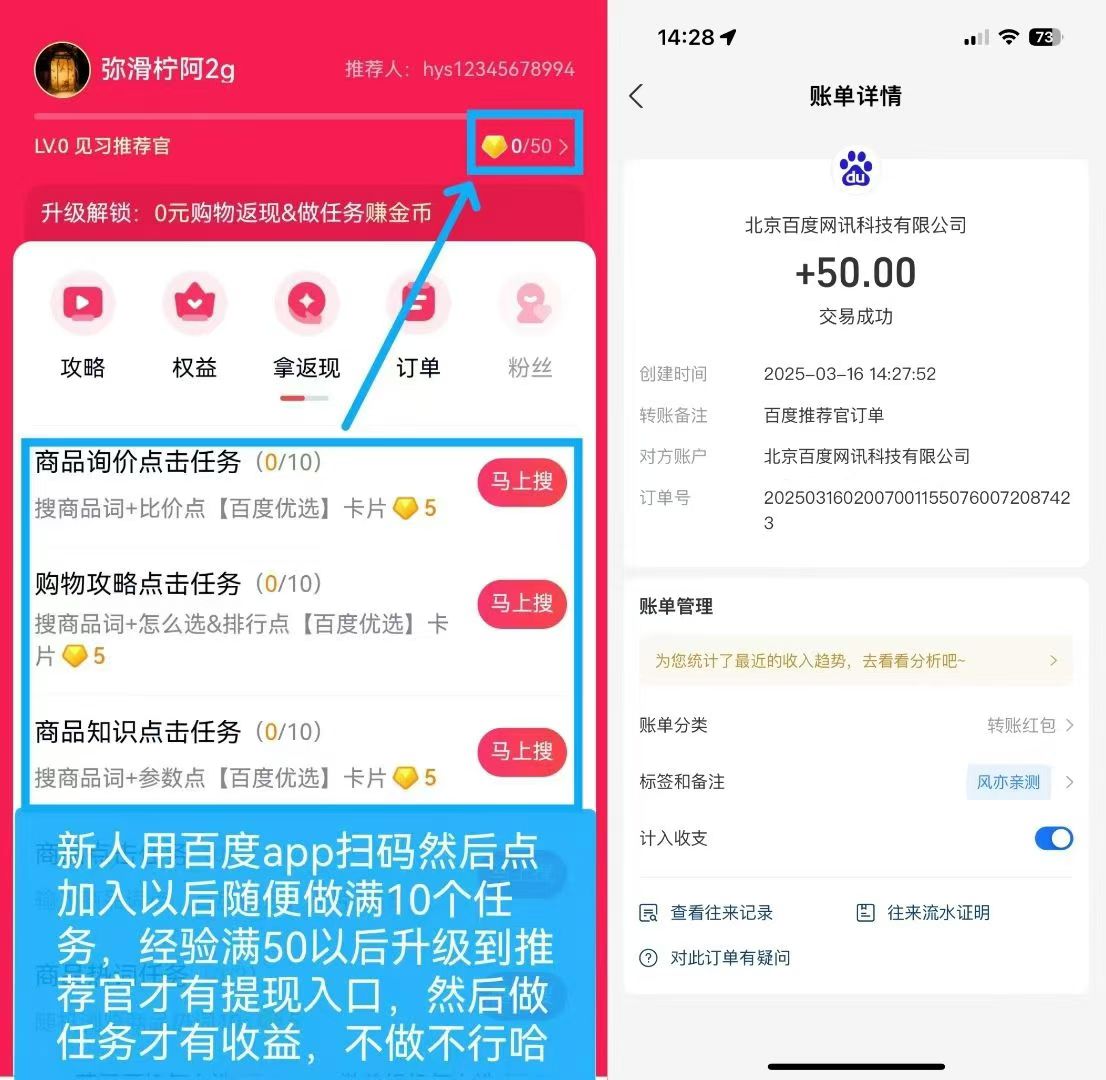 📢百度阅读~跟微信阅读不冲突,这个比较稳定不会有限制的情况 2026-4-25 1:48 | 免费项目,公众号:第一人副业,副业 | 77 本文最后更新于4 天前,其中的信息可能已经过时,如有错误请联系微信:diyirenfuye 百度阅读~单号每天最高🉑撸8💰 一个浏览任务得450金币左右 这个做任务的天数多了收益会降低,如果遇到降低的情况就过几天这样就会恢复回来 注意:新人首次登陆必须先做任务升到推荐官才会出现提现和推广入口 赞赏 文末附加内容 搬砖项目 豆 暂无评论 发送评论 编辑评论 正在回复 的评论 : 取消回复 邮件提醒 发送 编辑 取消 |´・ω・)ノヾ(≧∇≦*)ゝ(☆ω☆)(╯‵□′)╯︵┴─┴ ̄﹃ ̄(/ω\)∠( ᐛ 」∠)_(๑•̀ㅁ•́ฅ)→_→୧(๑•̀⌄•́๑)૭٩(ˊᗜˋ*)و(ノ°ο°)ノ(´இ皿இ`)⌇●﹏●⌇(ฅ´ω`ฅ)(╯°A°)╯︵○○○φ( ̄∇ ̄o)ヾ(´・ ・`。)ノ"( ง ᵒ̌皿ᵒ̌)ง⁼³₌₃(ó﹏ò。)Σ(っ °Д °;)っ( ,,´・ω・)ノ"(´っω・`。)╮(╯▽╰)╭o(*////▽////*)q>﹏<( ๑´•ω•) "(ㆆᴗㆆ)😂😀😅😊🙂🙃😌😍😘😜😝😏😒🙄😳😡😔😫😱😭💩👻🙌🖕👍👫👬👭🌚🌝🙈💊😶🙏🍦🍉😣Source: github.com/k4yt3x/flowerhd 颜文字Emoji小恐龙花! × × 上一篇今天新平台,单机每天30-50+免费提供不养机玩法教程,扶持拉满,待遇置顶!下一篇 外面带的0🦌200话费🚗 推荐文章 0撸青苹果项目一个广告0.2元,不需要养机 一天40+ 电商数据采集长期项目 量化美刀自动玩法 Iccloud电脑挂机项目 长期项目阿瓦隆 单号低保3600,多开啥的都行 外面收费288的新挂机🚗 最新淘宝数据采集玩法—第一人副业更新 抖音福袋电脑挂机项目 潮玩最新0撸项目 第一人工具箱-独家合集
