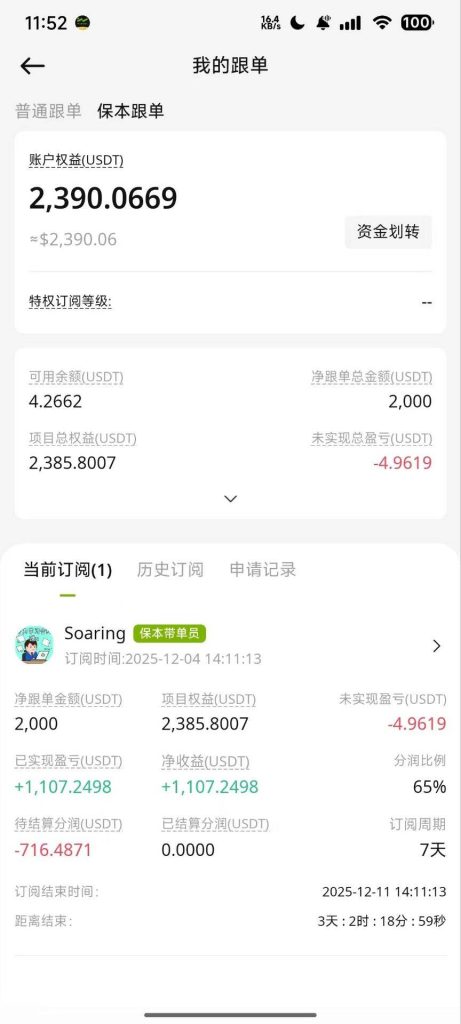websea保本跟单 外面一直都有在带 说白了就是你亏多少平台赔你多少 再差也就亏点手续费 群友已经润了几千u了 我自己也是拉满6个号再跟